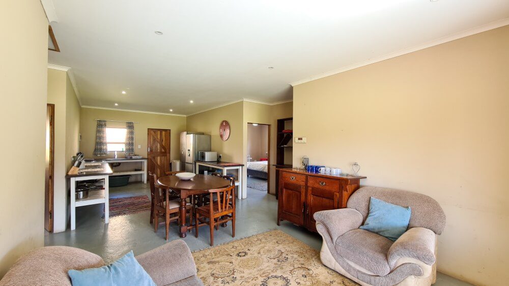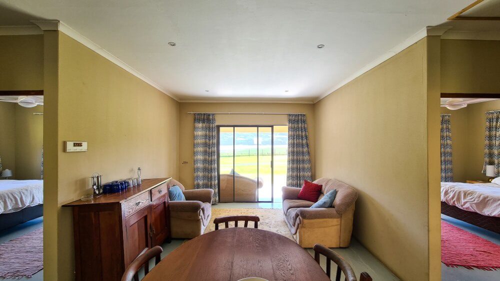 Nestled in a serene setting, the Big Cottage is an expansive accommodation option designed to cater to larger groups or family gatherings, comfortably housing up to 12 guests. It features four generously sized bedrooms; three with double beds and one with two single beds.